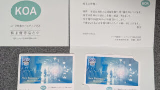 優待情報 9273 コーア商事ホールディングスの株主優待到着 2025年9月30日到着 2025年6月末権利のコーア商事ホールディングス(9273)から株主優待が到着しました。 クオカード2,000円をいただきました。 長期保有なので2,000円分(1000円が2枚)のクオカードです。 ... 2025.10.01 優待情報