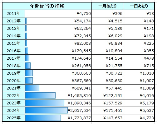 地道に株数を増やしていけば、配当は着実に増えていくので、
