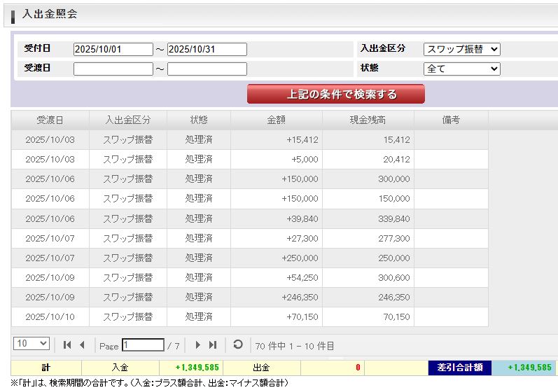 スワップ出金:1,349,585円(回収合計:1,738,330円)