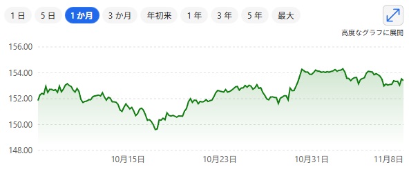 一時、総理大臣が決まるまで円高に推移したが高市総理大臣が決まったのち円安へ推移した