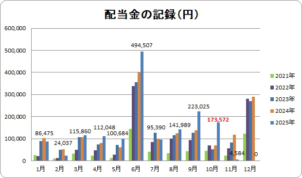 今まで10月を増やすのは大変だったけど毎月配当で楽々増加