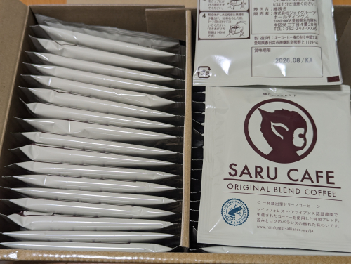 前回分と合わせて猿カフェブレンドコーヒーをいただく予定。