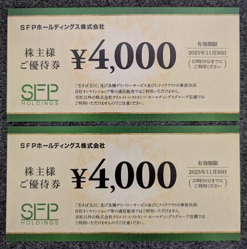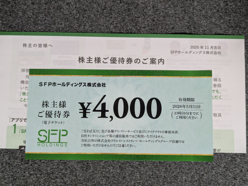 2025年8月末権利のSFPホールディングスから株主優待が到着しました。
