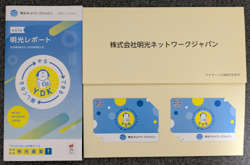2024年8月末権利の明光ネットワークジャパン(4668)から株主優待が到着しました。
