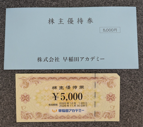 2025年9月末権利の早稲田アカデミー(4718)から株主優待が到着しました。