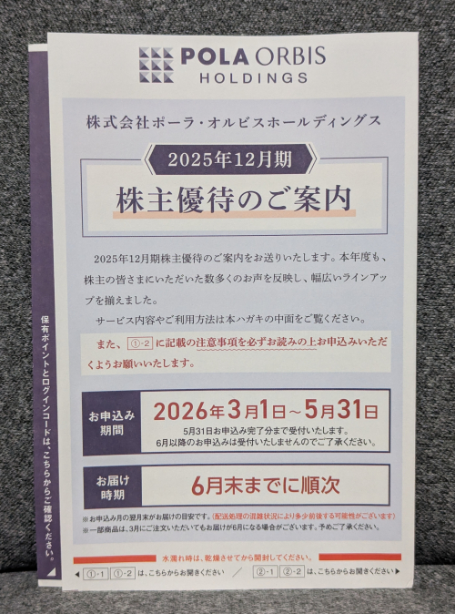 ポーラ・オルビスホールディングス(4927)から株主優待が到着しました。