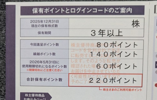 3年以上保有で80ポイントです。