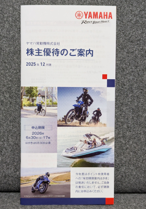 2025年12月末権利のヤマハ発動機(7272)から株主優待が到着しました。