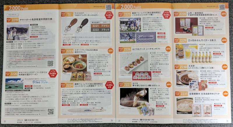 100株を3年以上保有なので2,000ポイントの商品と交換できます。