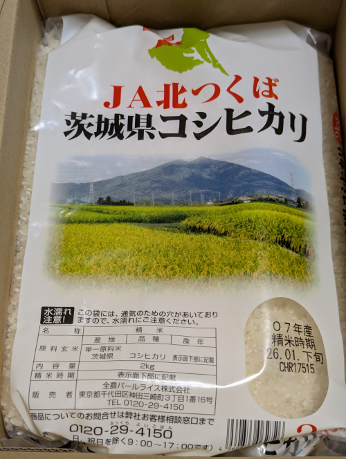 今年も茨城県のこしひかり2kgを2袋いただきました。