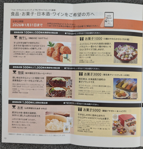 500株以上 カタログ3,000円分+グループの運営及び提携1000円券6枚